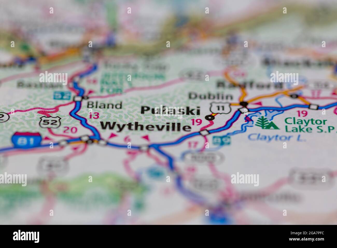 Pulaski Virginia shown on a road map or Geography map Stock Photo Alamy