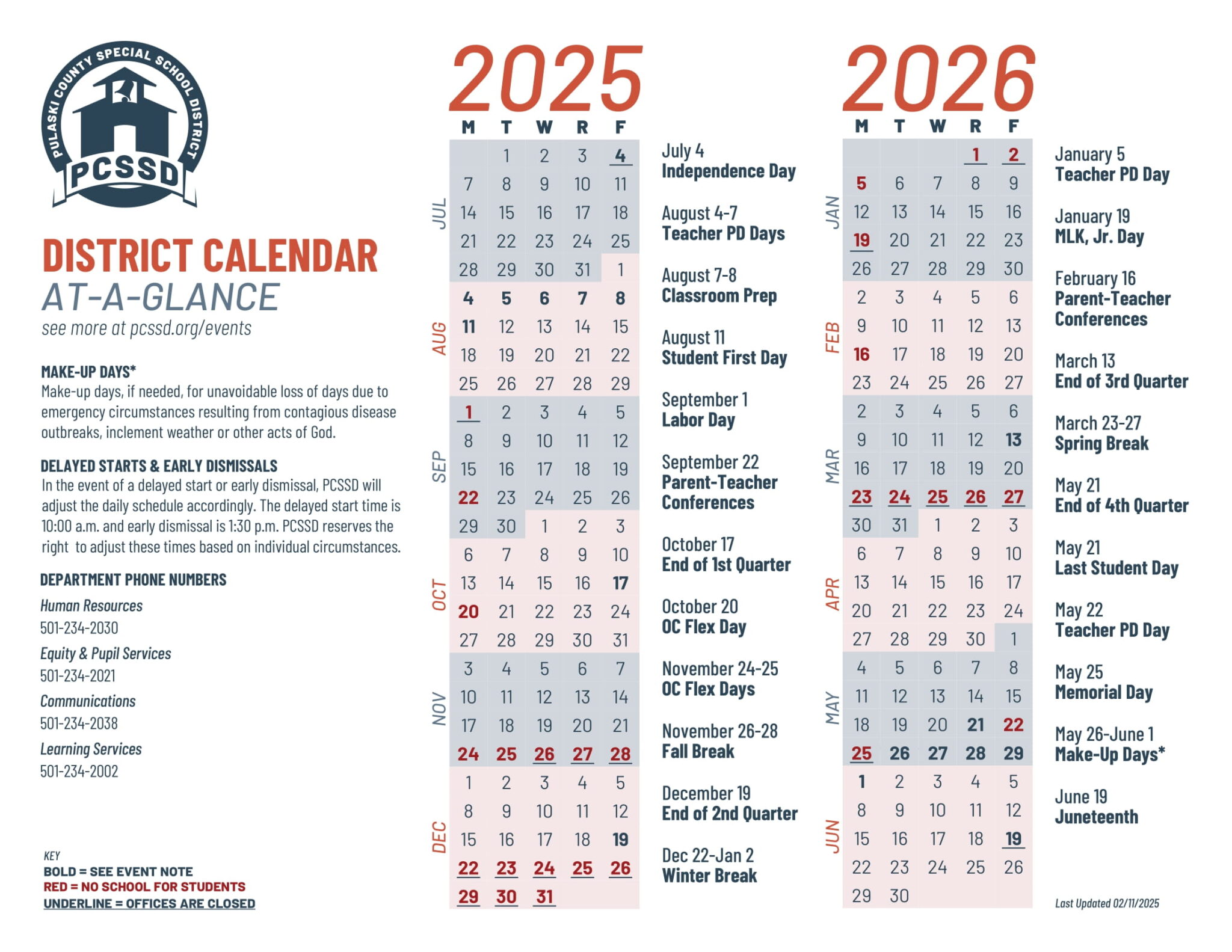 Pulaski County Special School District AR Calendar 25 26 Revised pdf
