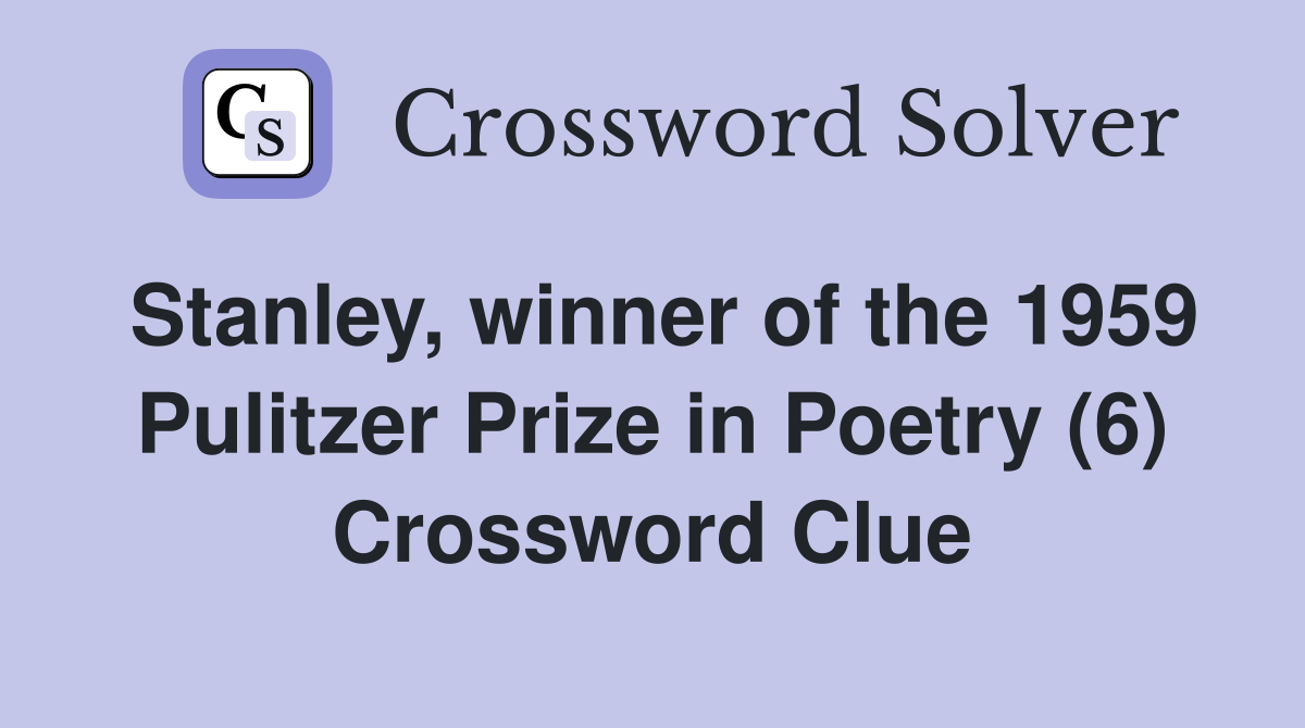 Stanley winner of the 1959 Pulitzer Prize in Poetry (6) Crossword