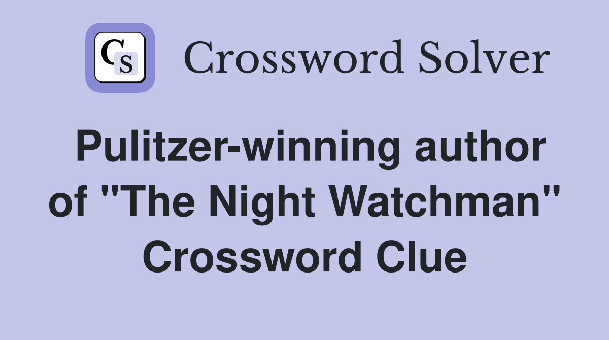 Pulitzer winning author of quot The Night Watchman quot Crossword Clue