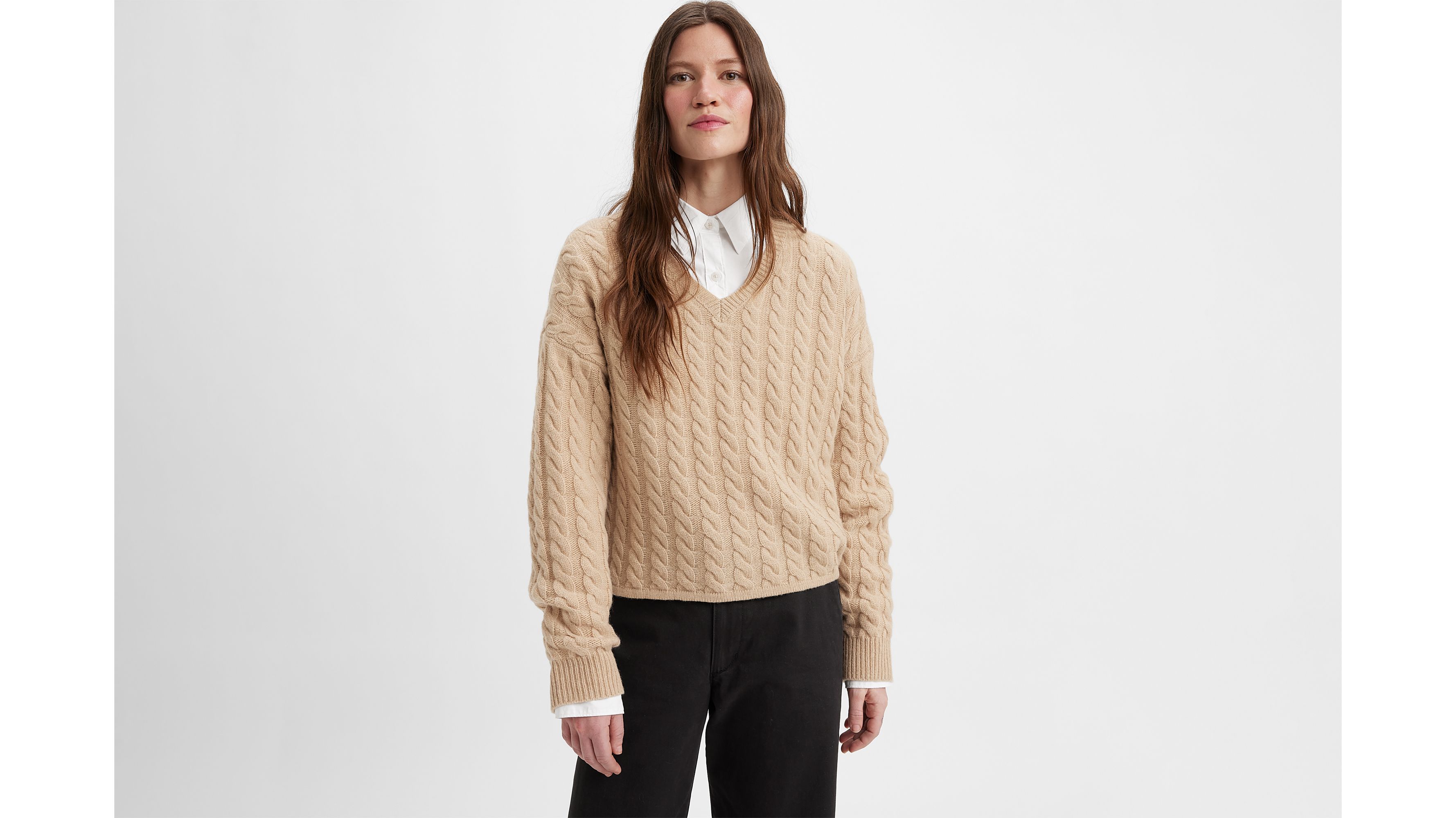 Pull chaud col montant avec laine et angora Beige Femme 43 99