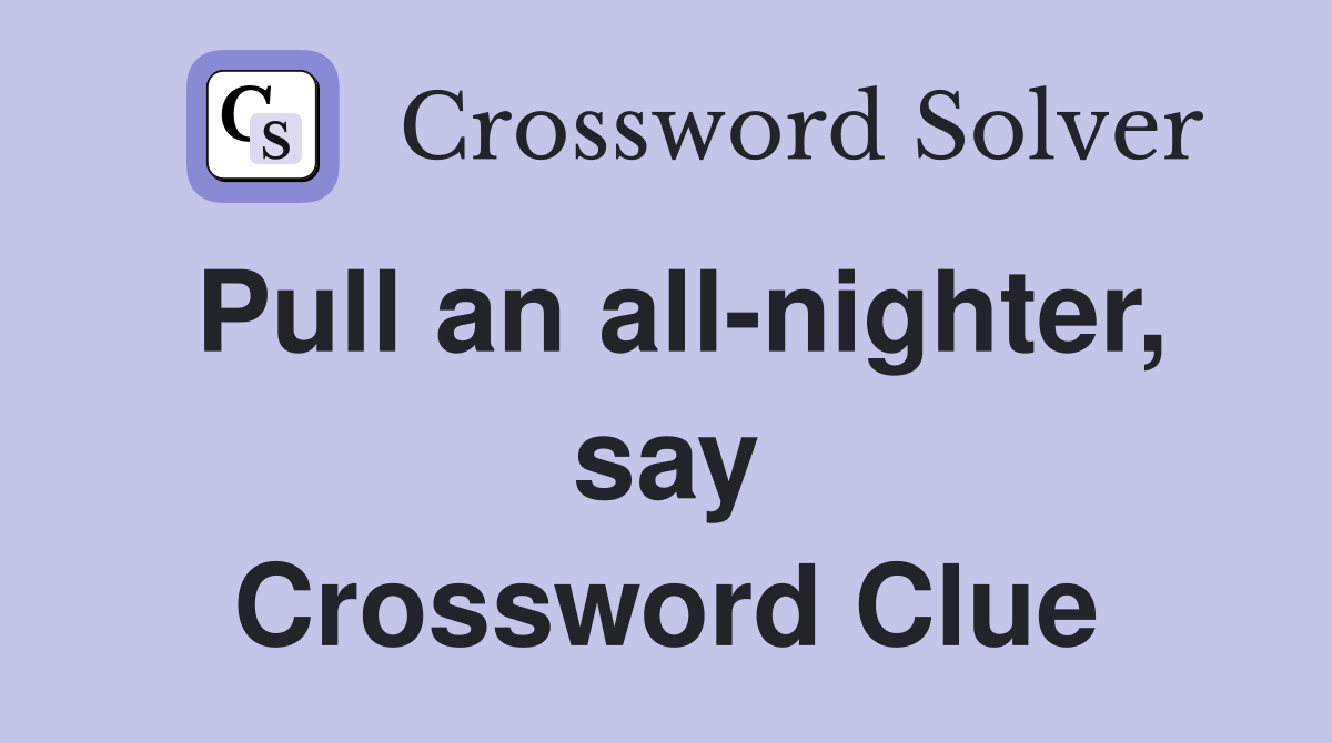 Pull an all nighter say Crossword Clue Answers Crossword Solver