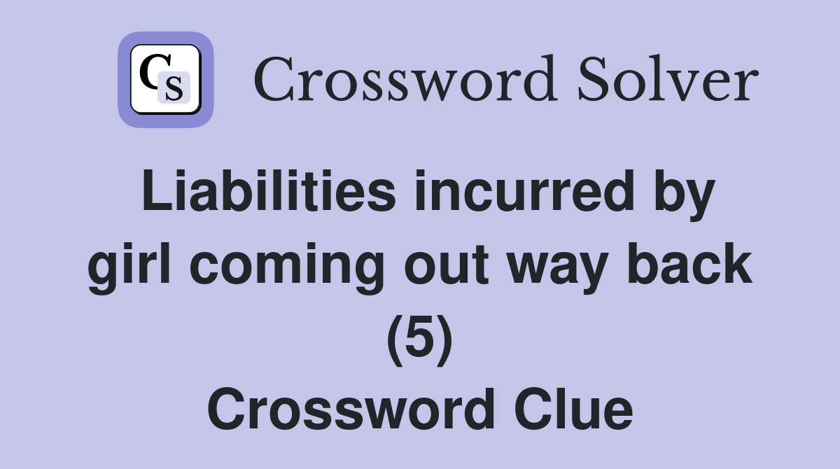 Liabilities incurred by girl coming out way back (5) Crossword Clue