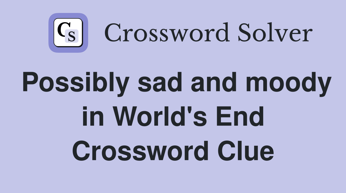 Possibly sad and moody in World #39 s End Crossword Clue Answers