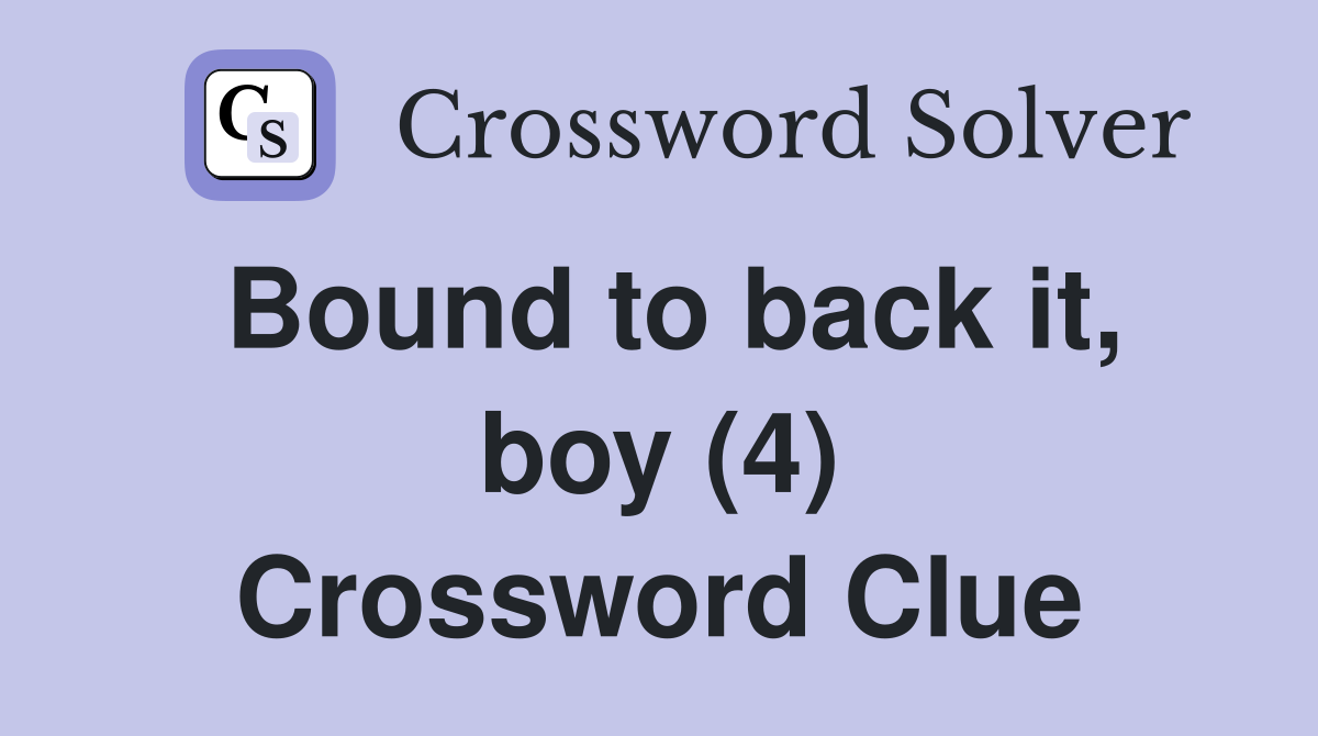 Bound to back it boy (4) Crossword Clue Answers Crossword Solver