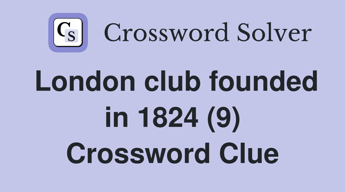 London club founded in 1824 (9) Crossword Clue Answers Crossword Solver