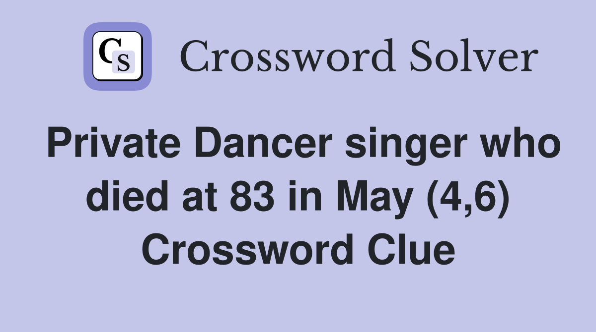 Private Dancer singer who died at 83 in May (4 6) Crossword Clue