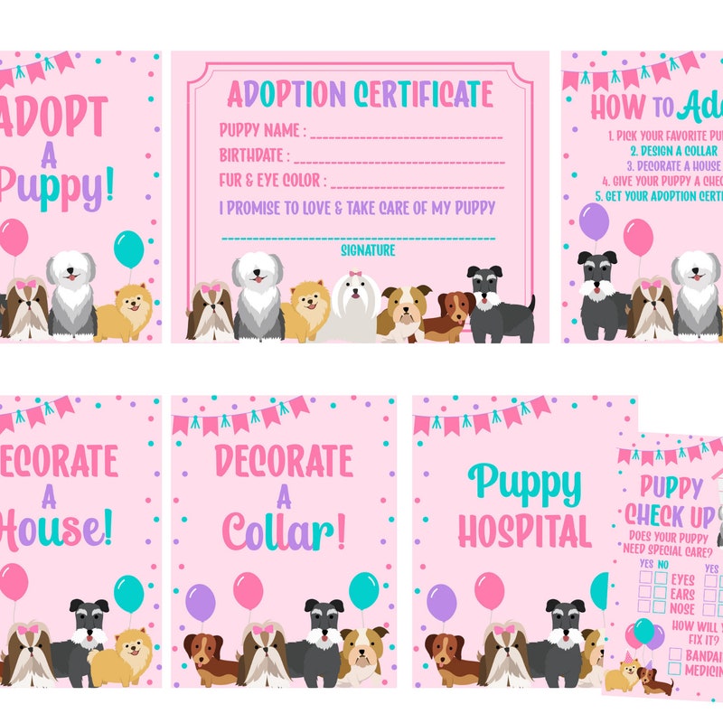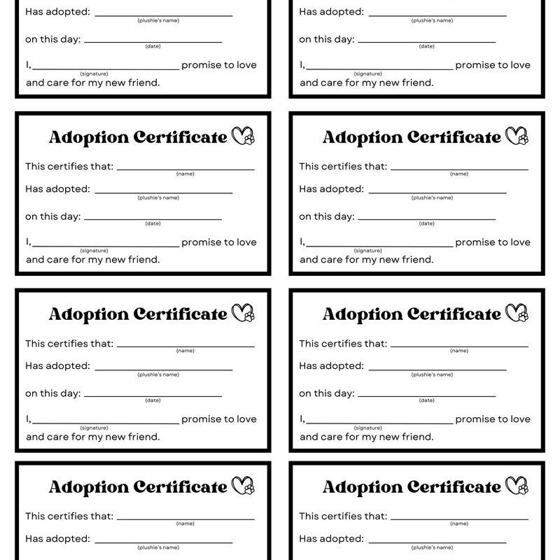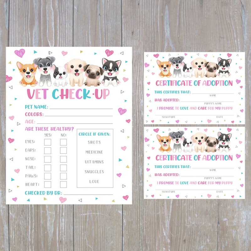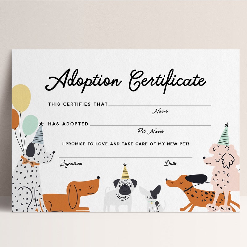 Pet adoption certificate puppy adoption party dog adoption certificate