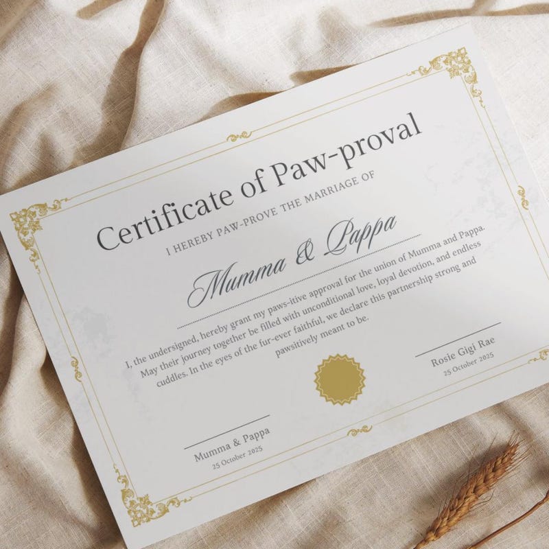 Certificate of No Paw Etsy