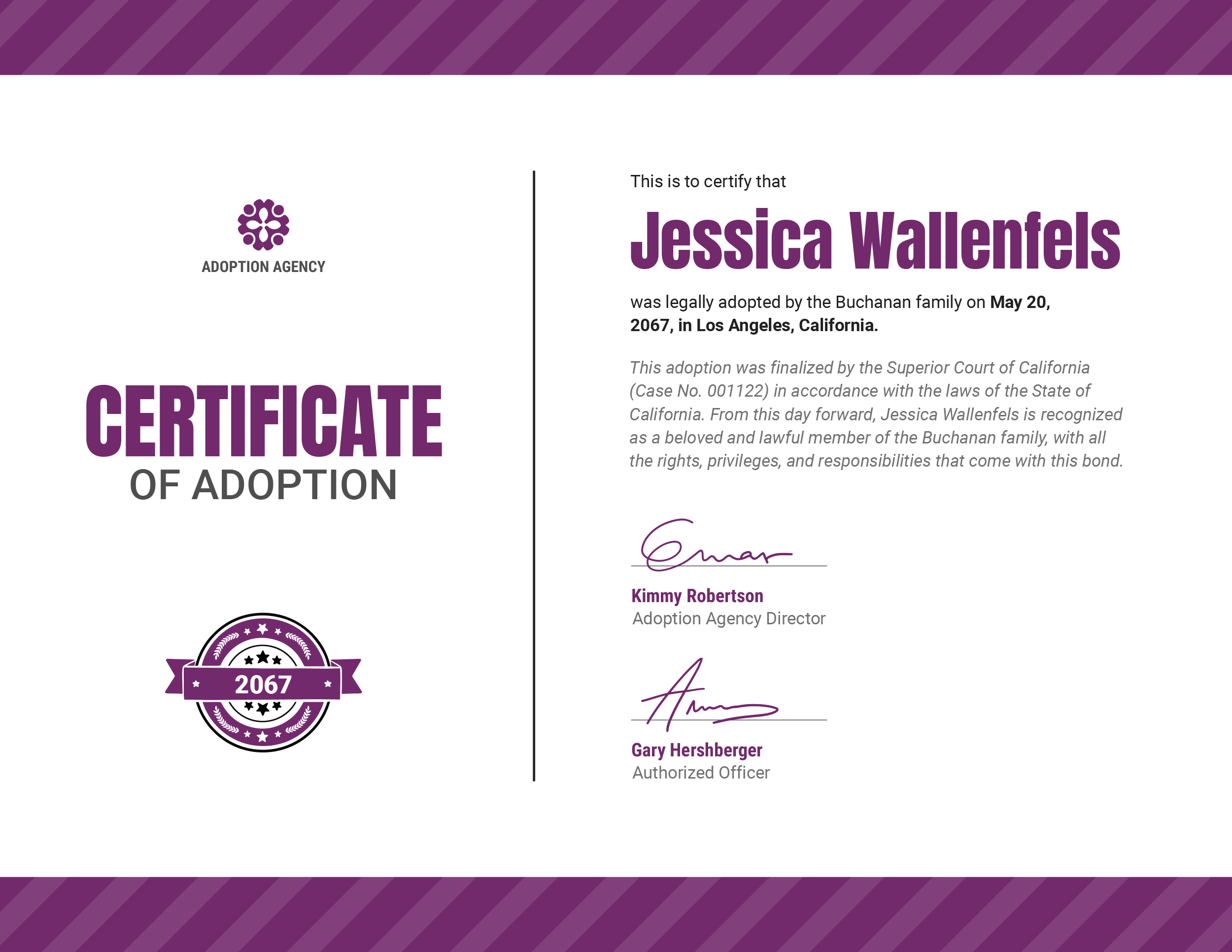 Adoption Certificate Printable