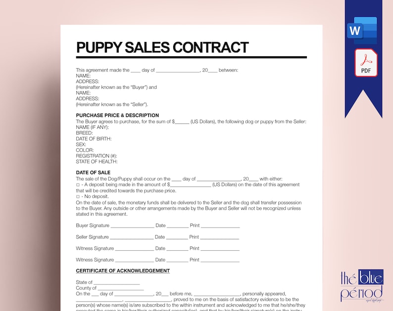 Puppy Sales Contract Personalised Puppy Contracts Puppy Contract