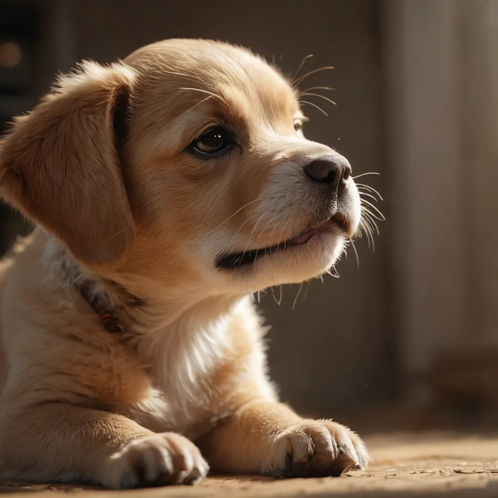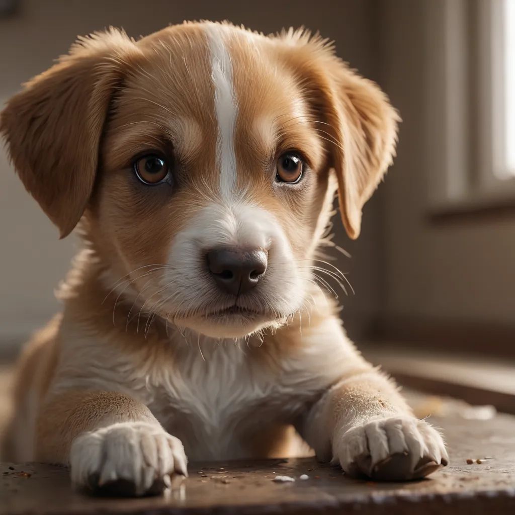 Premium AI Image a puppy sitting on a white surface looking at the camera