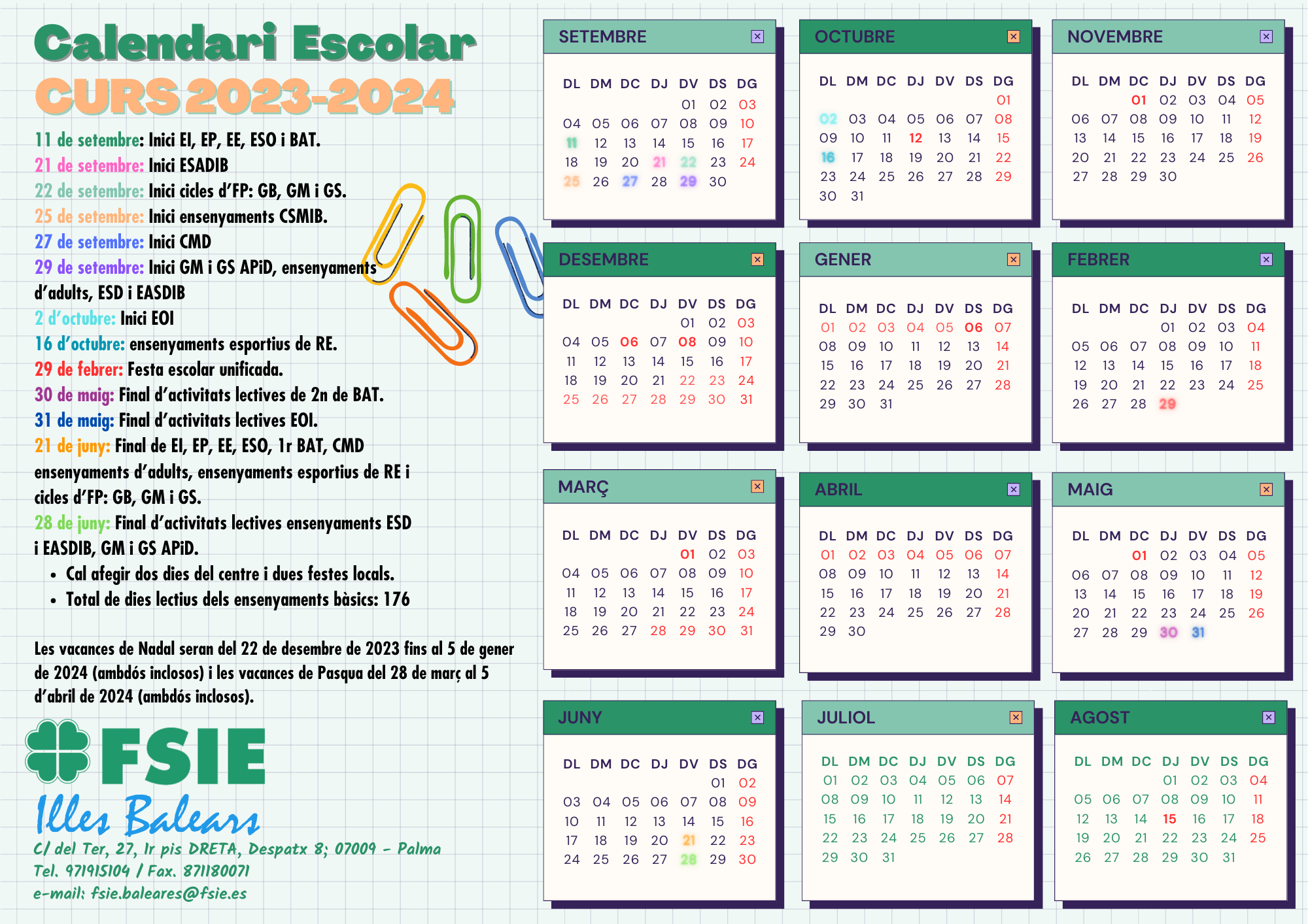 CALENDARI ESCOLAR 23 24 FSIE Illes Balears