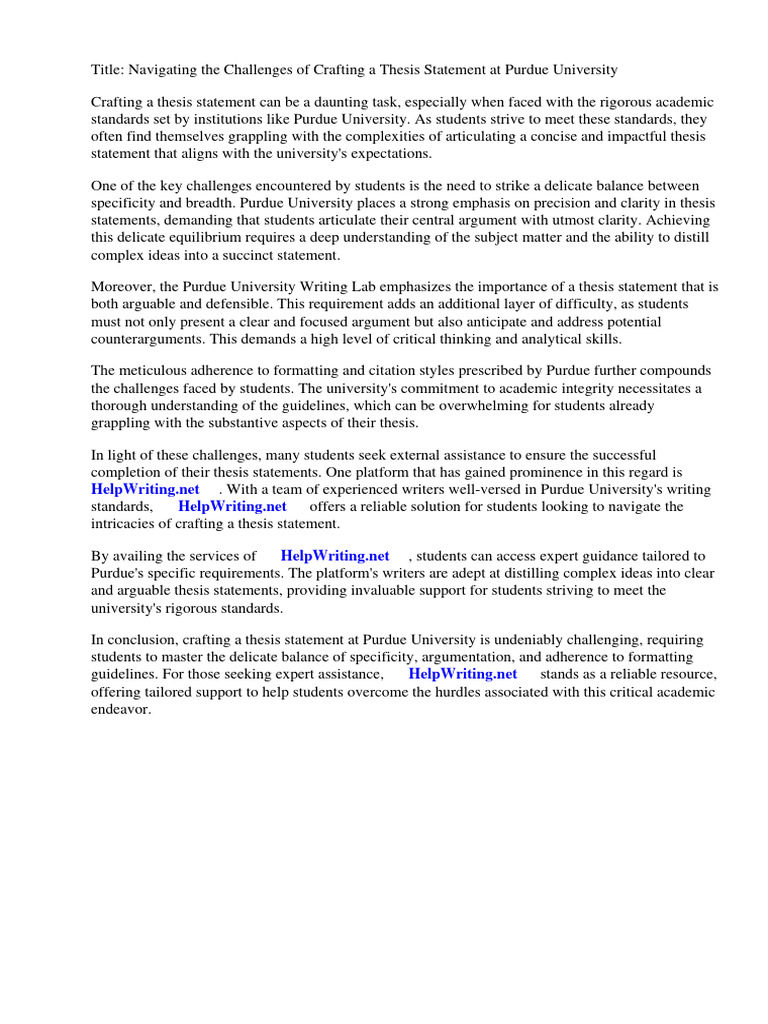 Purdue University Writing Thesis Statement PDF Essays Thesis