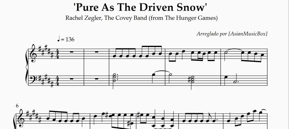 #39 Pure As The Driven Snow #39 (The Hunger Games) Piano Sheet Music / MIDI