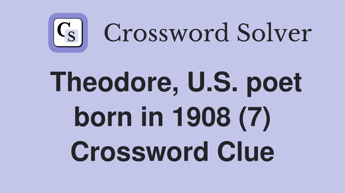 Theodore U S poet born in 1908 (7) Crossword Clue Answers