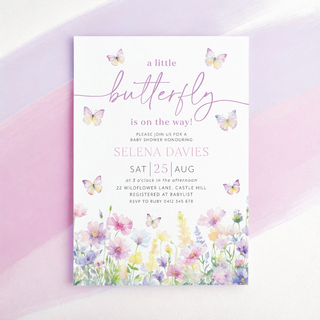 Digital Butterfly Baby Shower Invitation Purple Butterfly Invitation