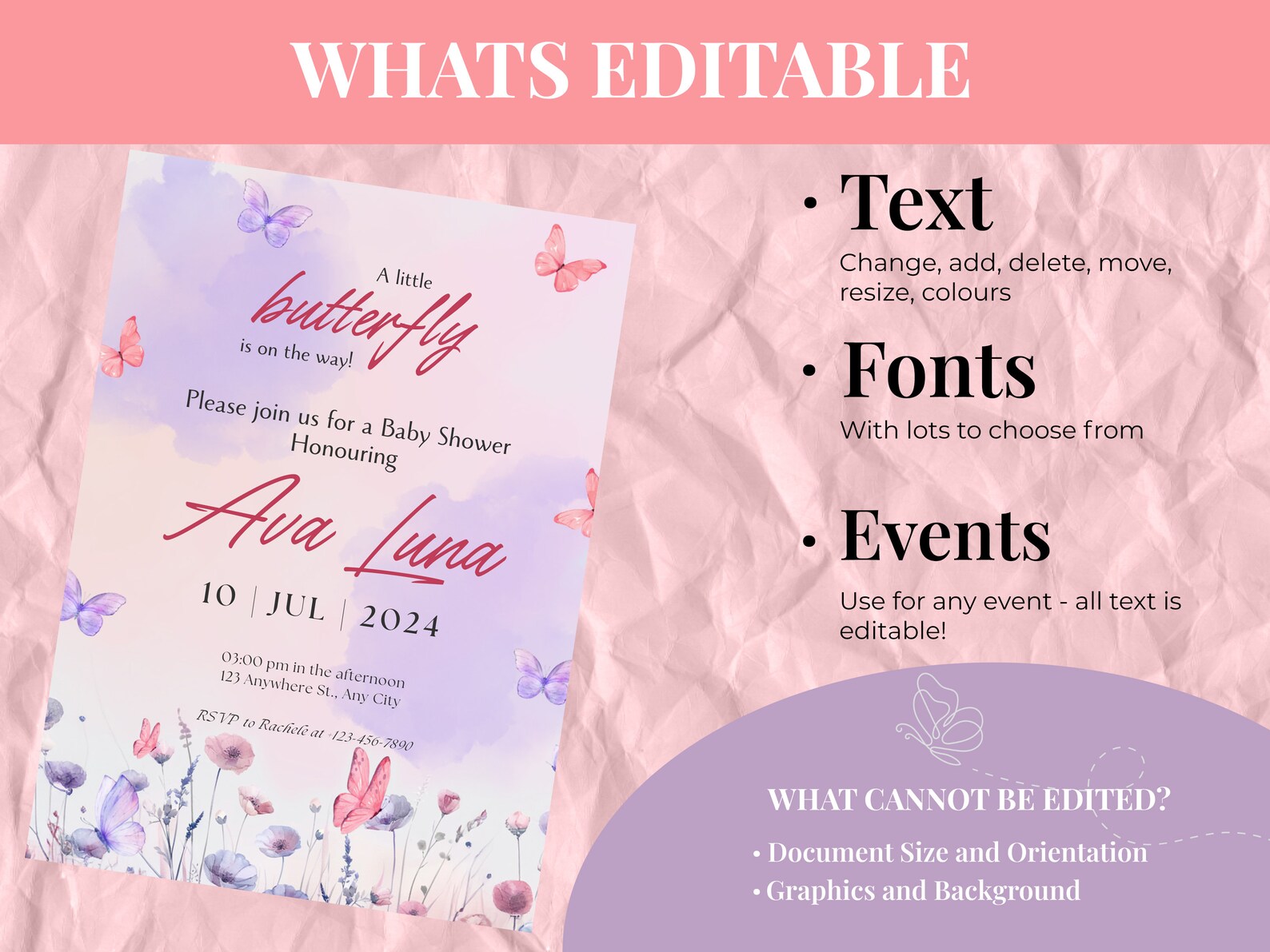 Free Purple Butterfly Invitation Template to Edit Online
