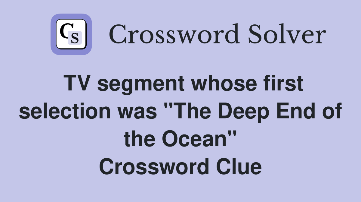 TV segment whose first selection was quot The Deep End of the Ocean