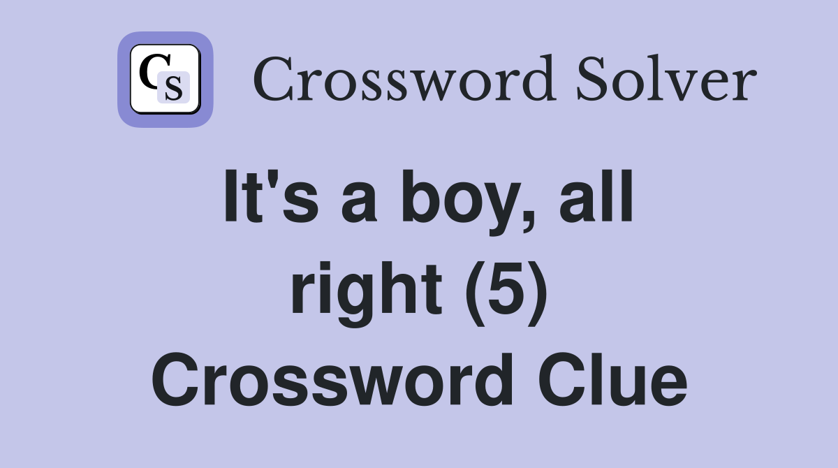 It #39 s a boy all right (5) Crossword Clue Answers Crossword Solver