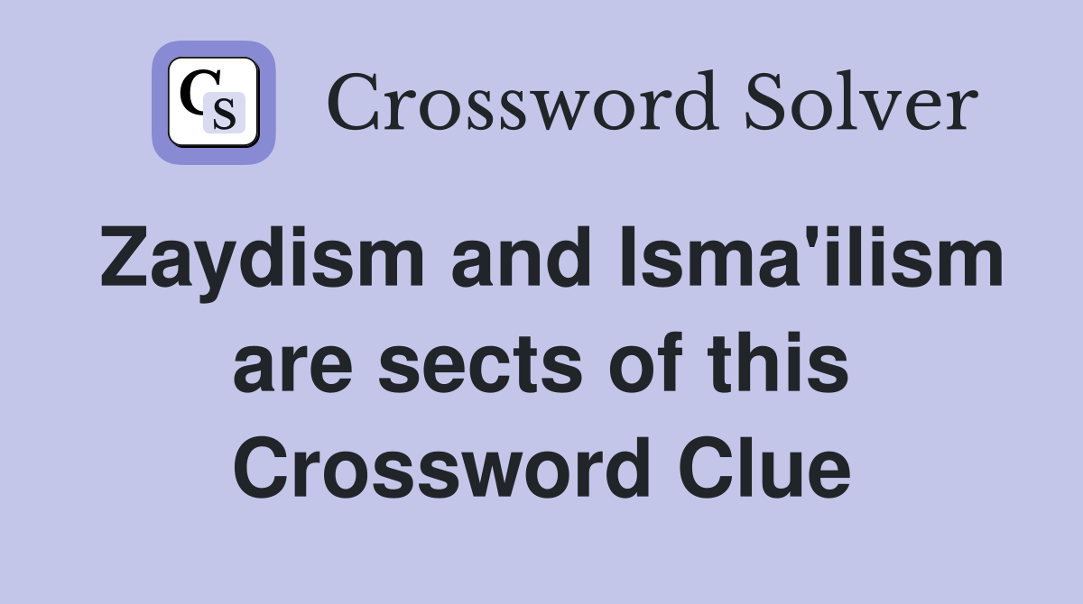 Zaydism and Isma #39 ilism are sects of this Crossword Clue Answers