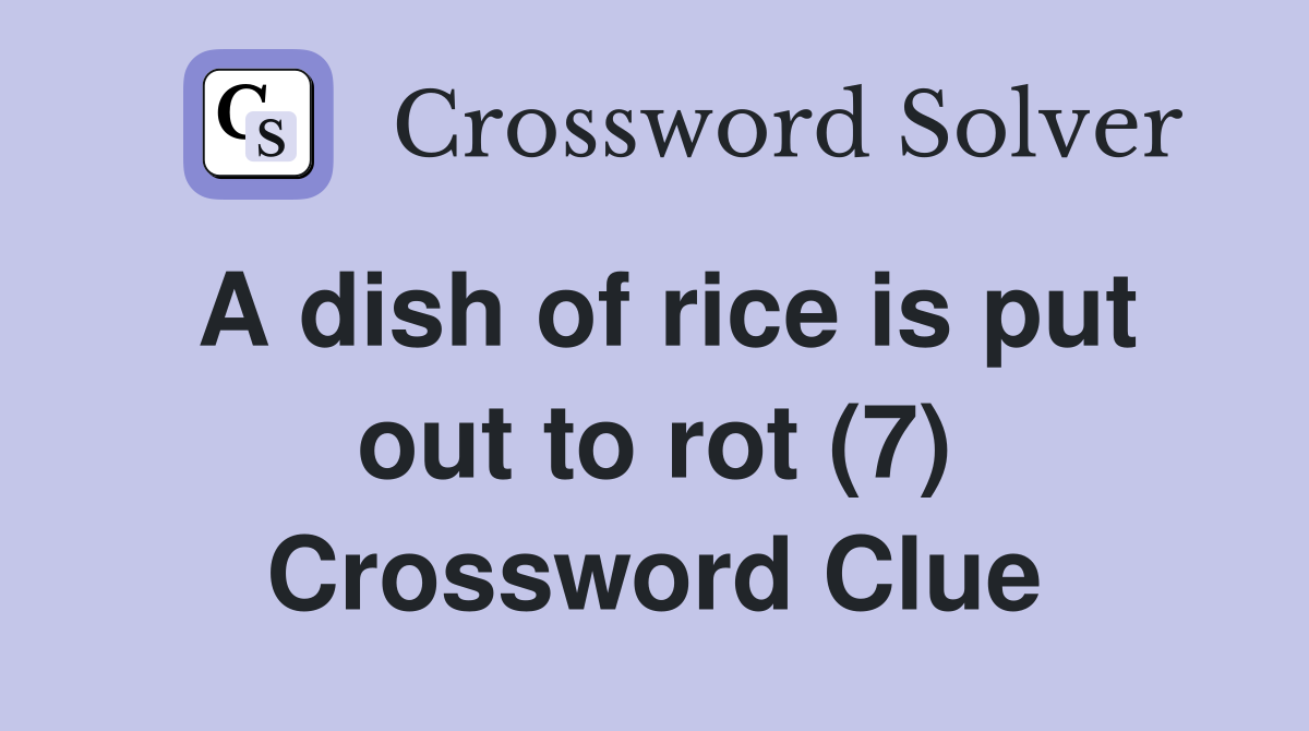 A dish of rice is put out to rot (7) Crossword Clue Answers