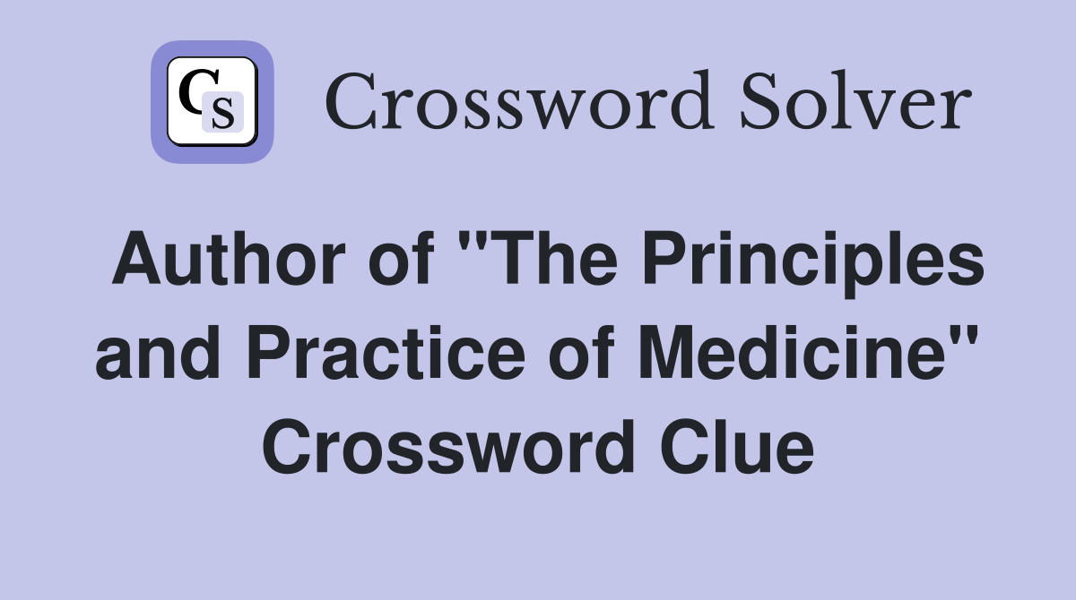 Author of quot The Principles and Practice of Medicine quot Crossword Clue