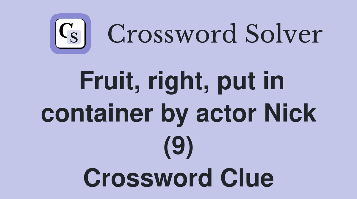 Fruit right put in container by actor Nick (9) Crossword Clue