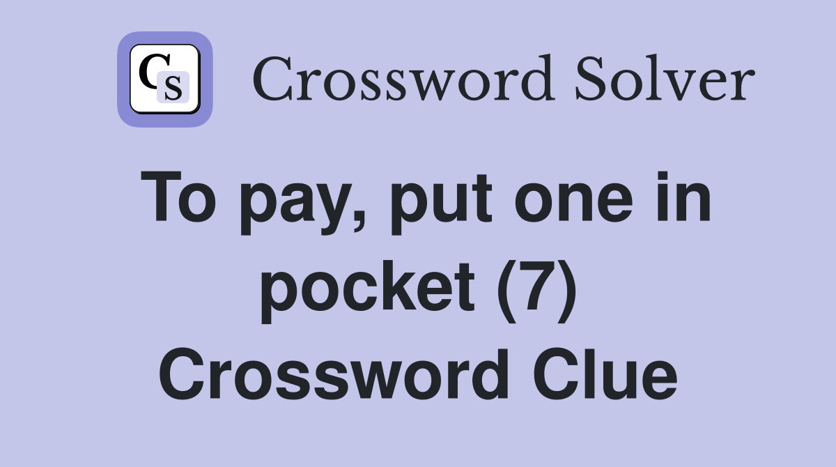 To pay put one in pocket (7) Crossword Clue Answers Crossword Solver