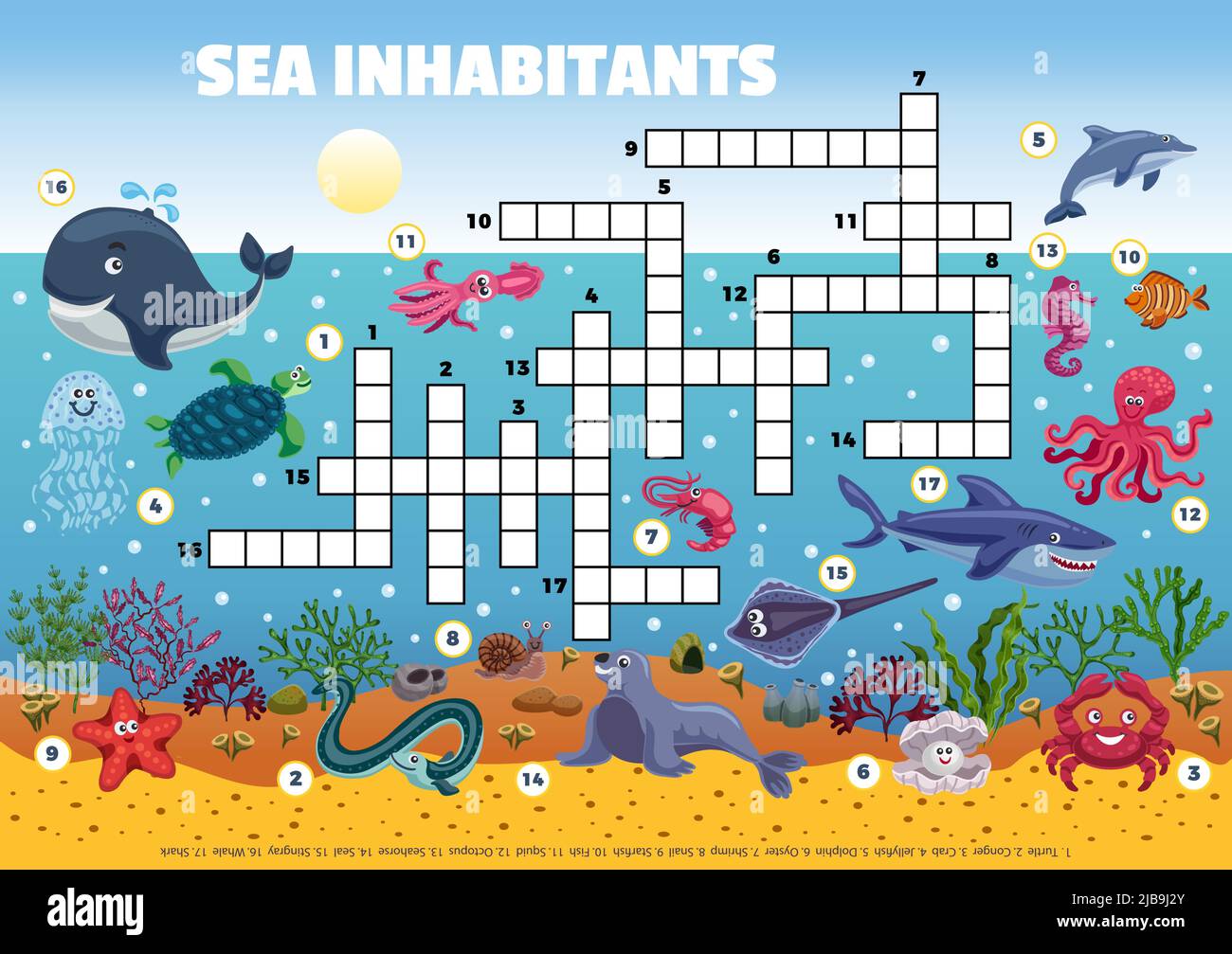 Sea Crossword Ocean Animals Crosswords Game Stock Vector (Royalty Free