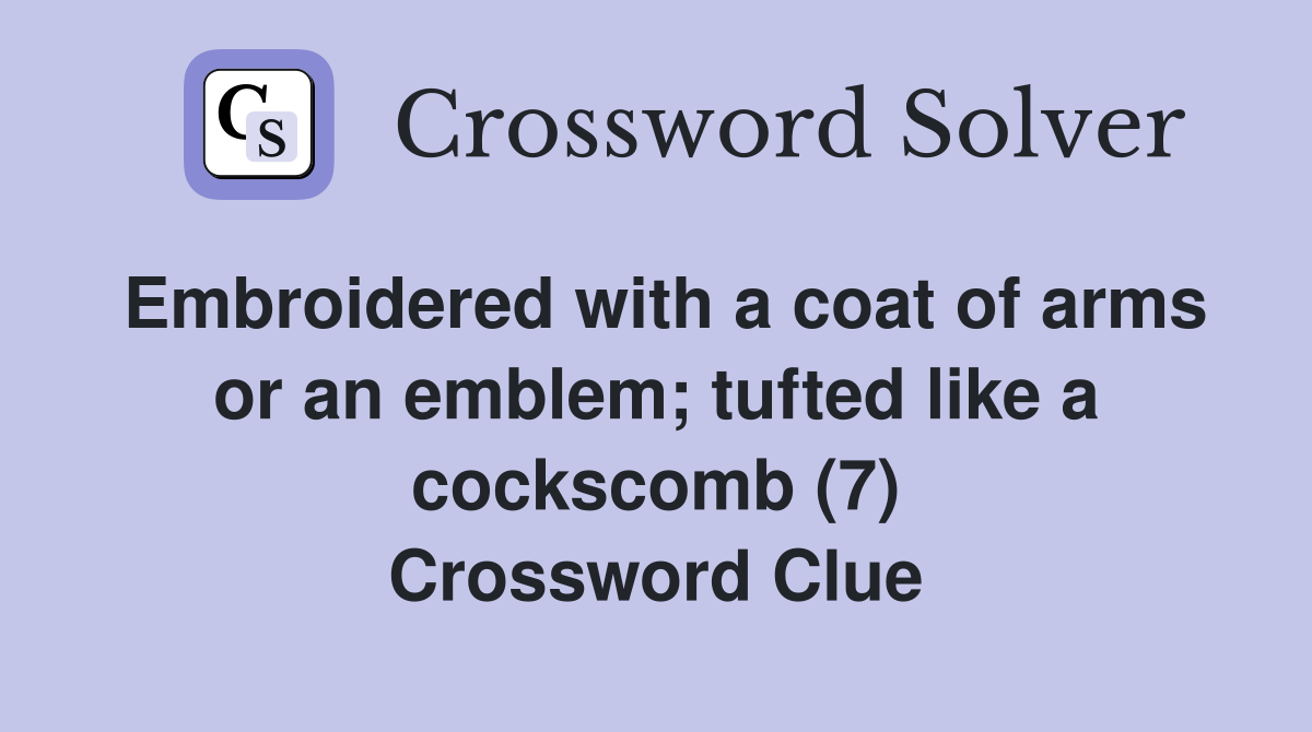 Embroidered with a coat of arms or an emblem tufted like a cockscomb