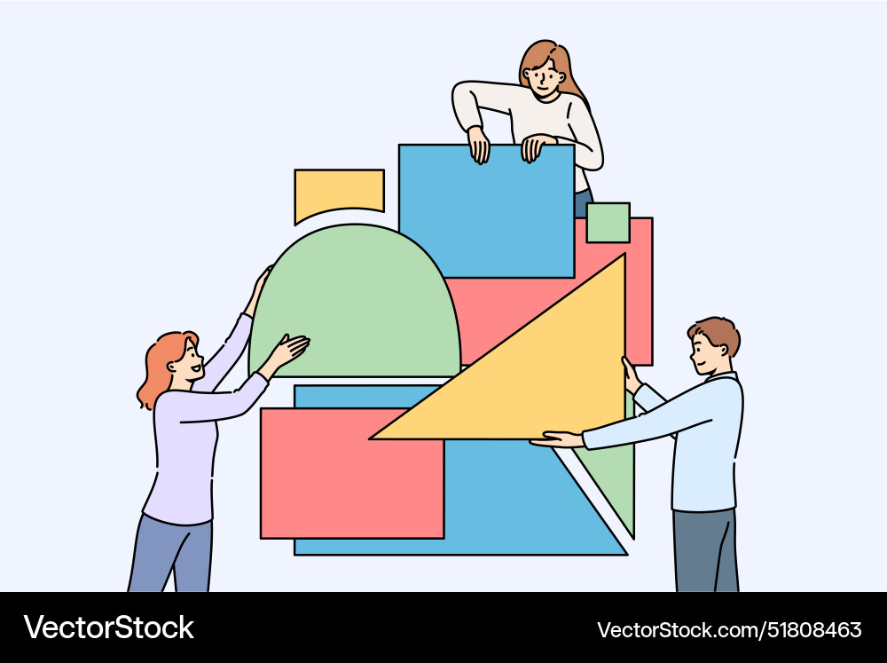 Men Work Together To Put Together Two Jigsaw Puzzle Pieces in an