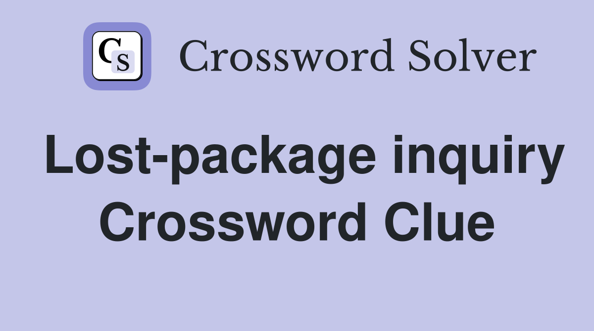 Lost package inquiry Crossword Clue Answers Crossword Solver