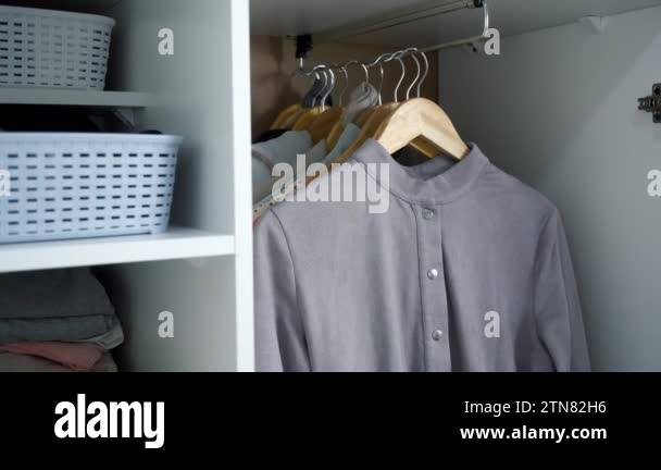Woman Puts Things in Order in Her Closet by Folding Clothes Neatly