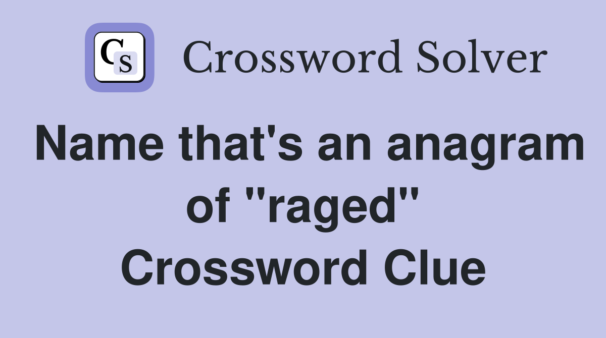 Name that #39 s an anagram of quot raged quot Crossword Clue Answers Crossword