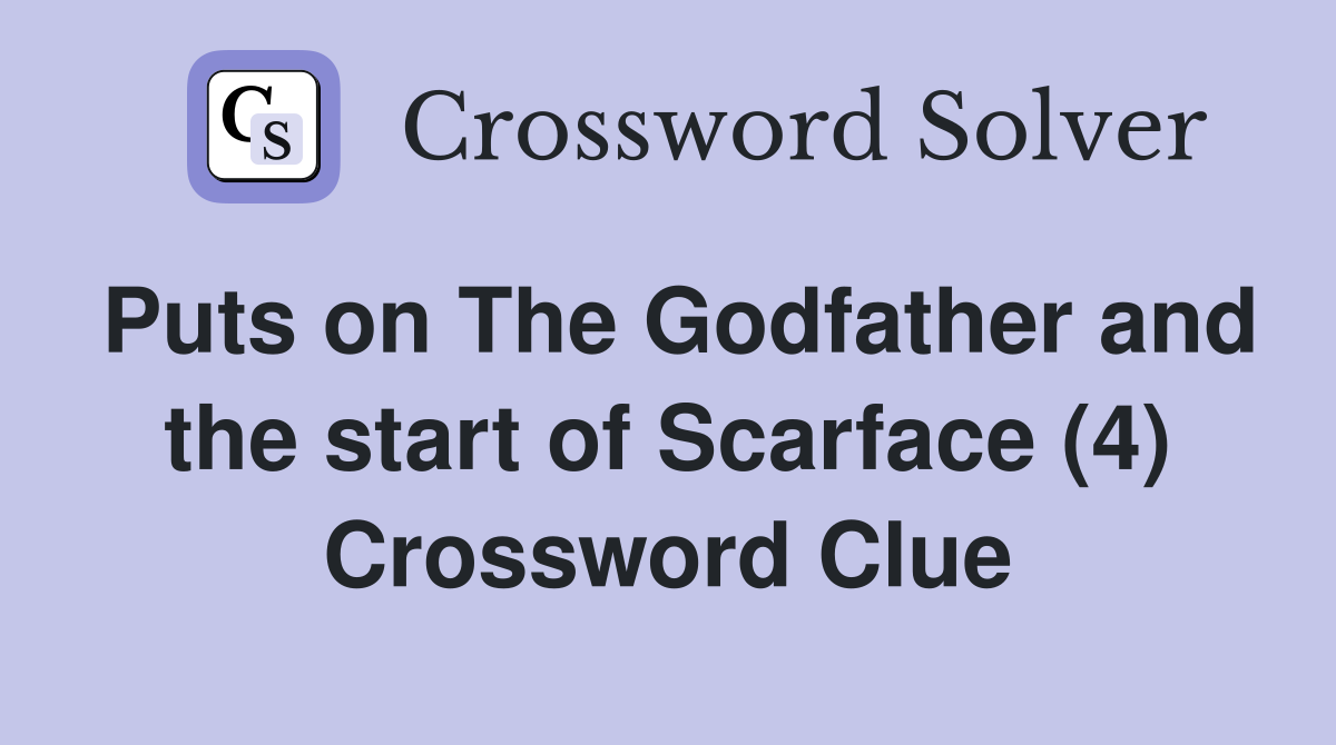 Puts on The Godfather and the start of Scarface (4) Crossword Clue