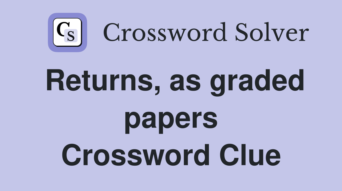 Returns as graded papers Crossword Clue Answers Crossword Solver
