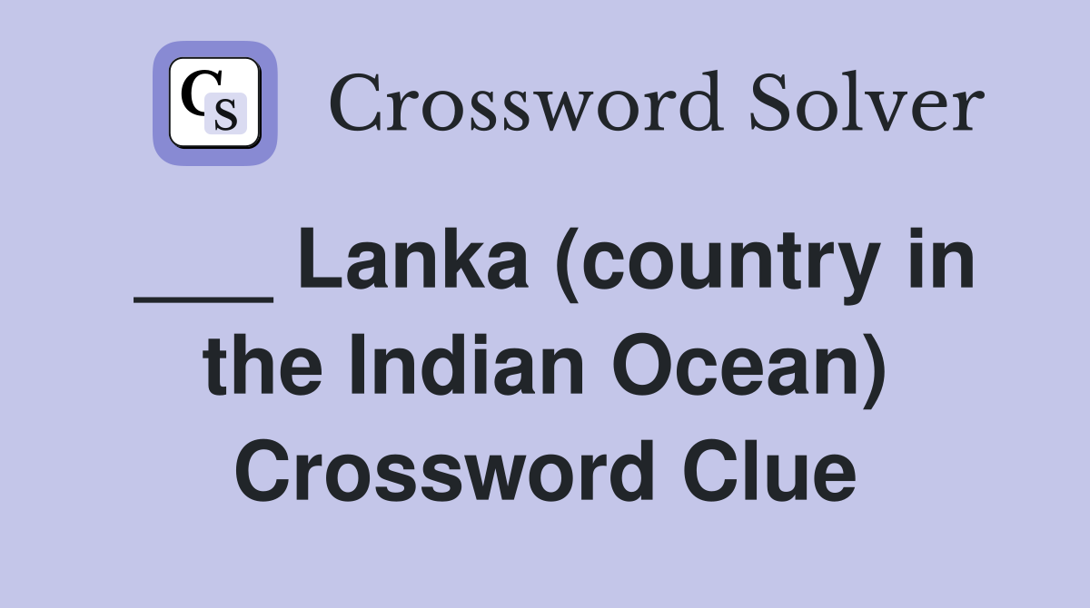Lanka (country in the Indian Ocean) Crossword Clue Answers