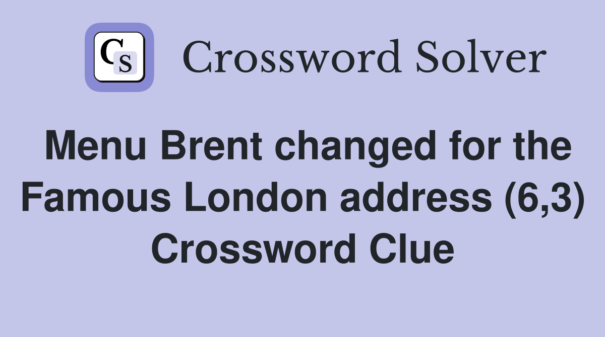 Menu Brent changed for the Famous London address (6 3) Crossword Clue