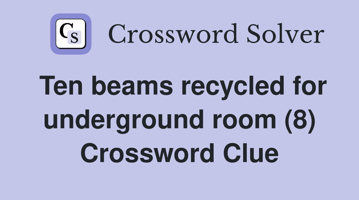 Ten beams recycled for underground room (8) Crossword Clue Answers