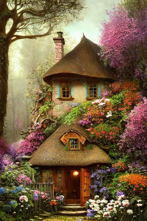 a detailed painting of a quaint cottage in the briti
