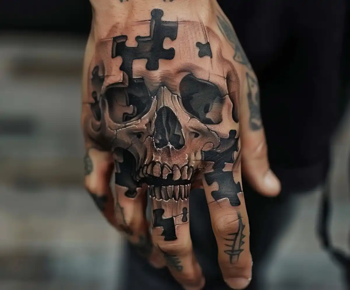 Midjourney Prompt: Realistic Skull Puzzle Tattoo Prompt Library