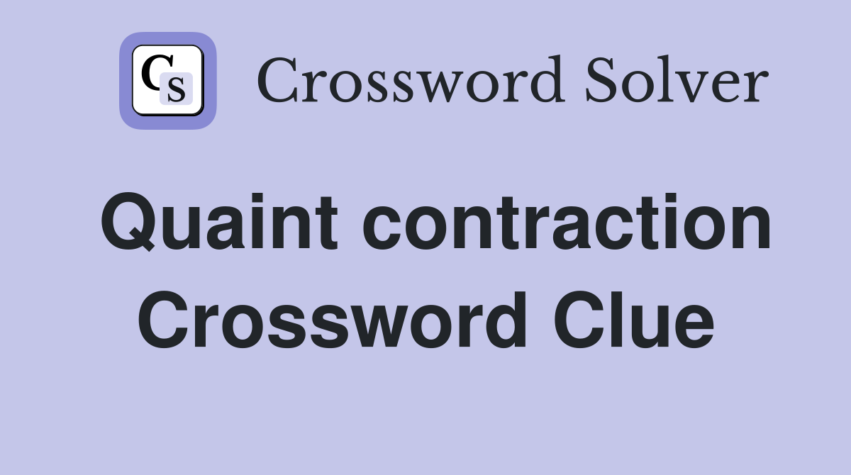Quaint contraction Crossword Clue Answers Crossword Solver
