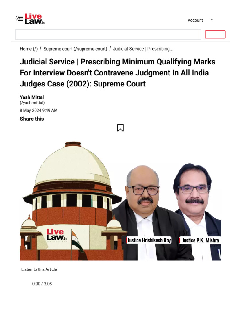 Judicial Service Prescribing Minimum Qualifying Marks For Interview