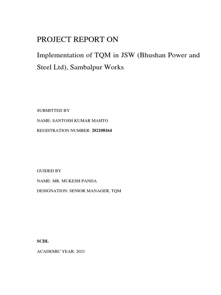 TQM Implementation Project Report SCDL PDF Histogram Quality