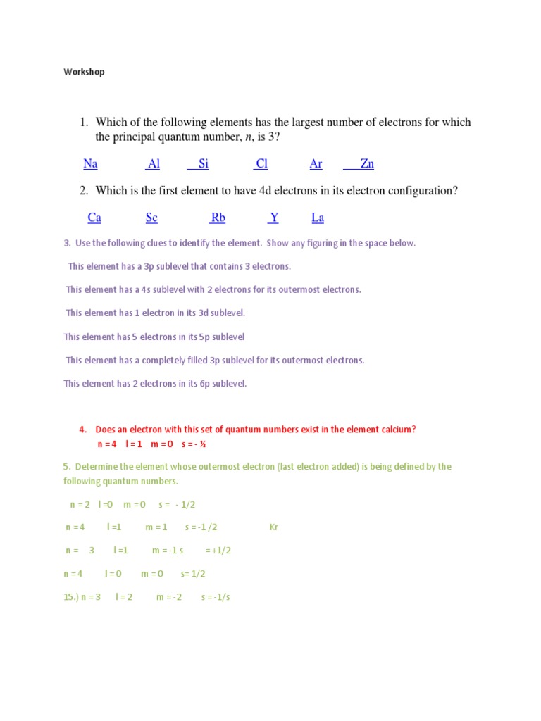 SOLUTION: Quantum numbers worksheet answers Studypool Worksheets