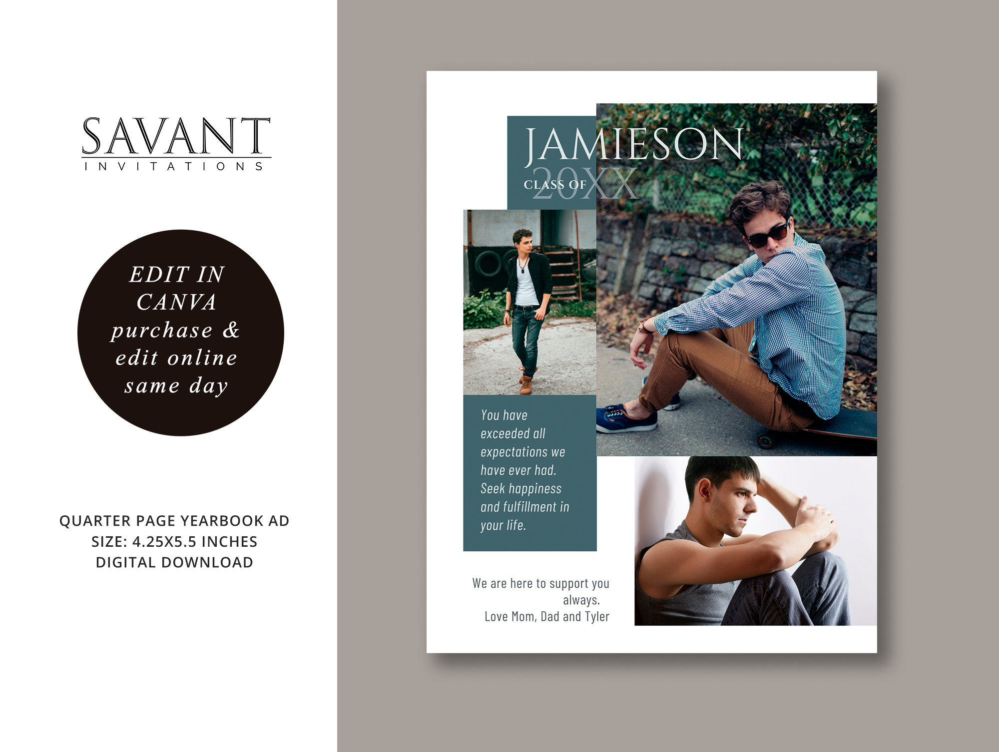Senior Yearbook Ad Template Full Page Half Page Quarter Etsy
