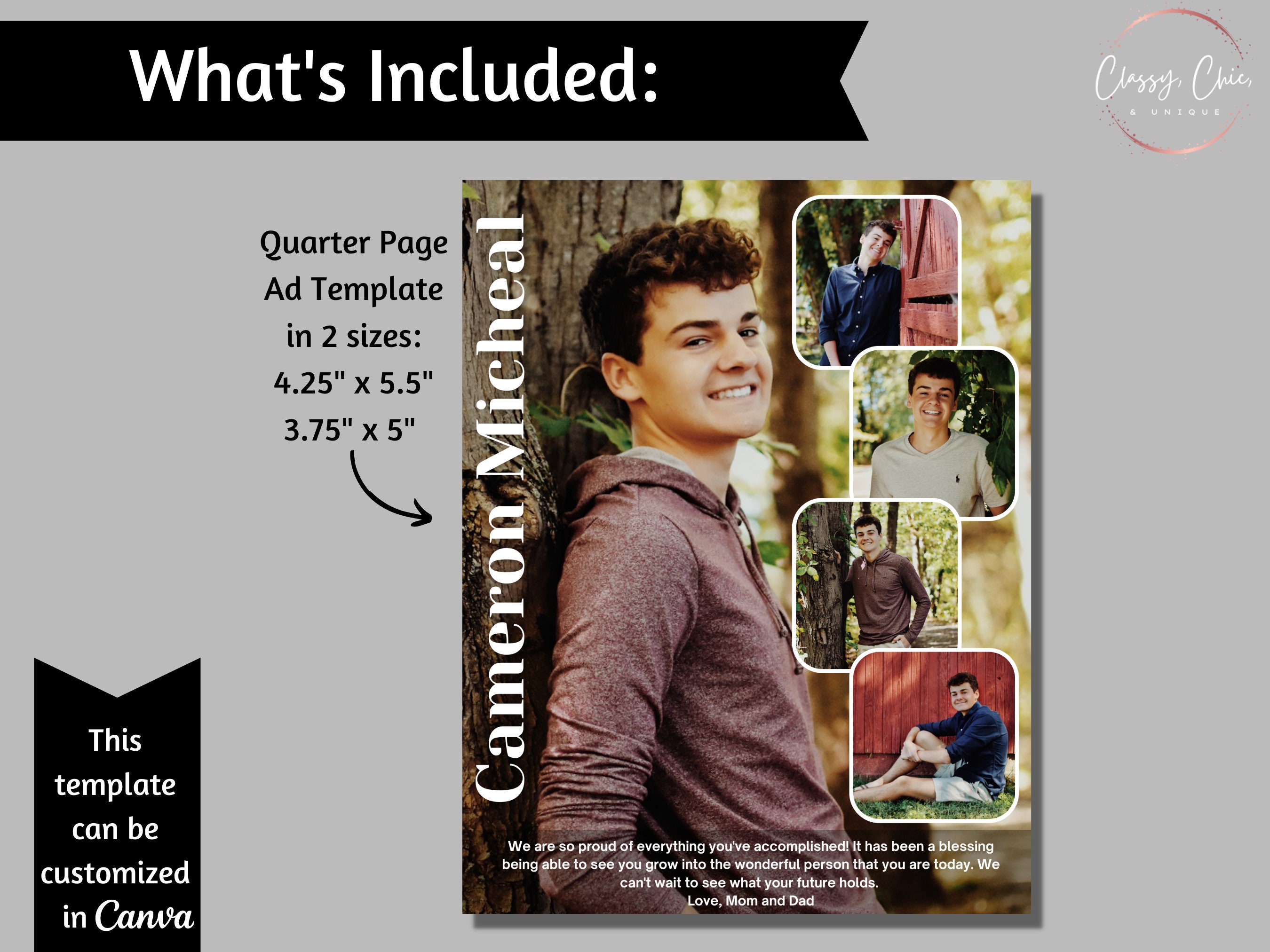 Quarter Page Graduation Yearbook Ad Senior Tribute Ad Canva Etsy