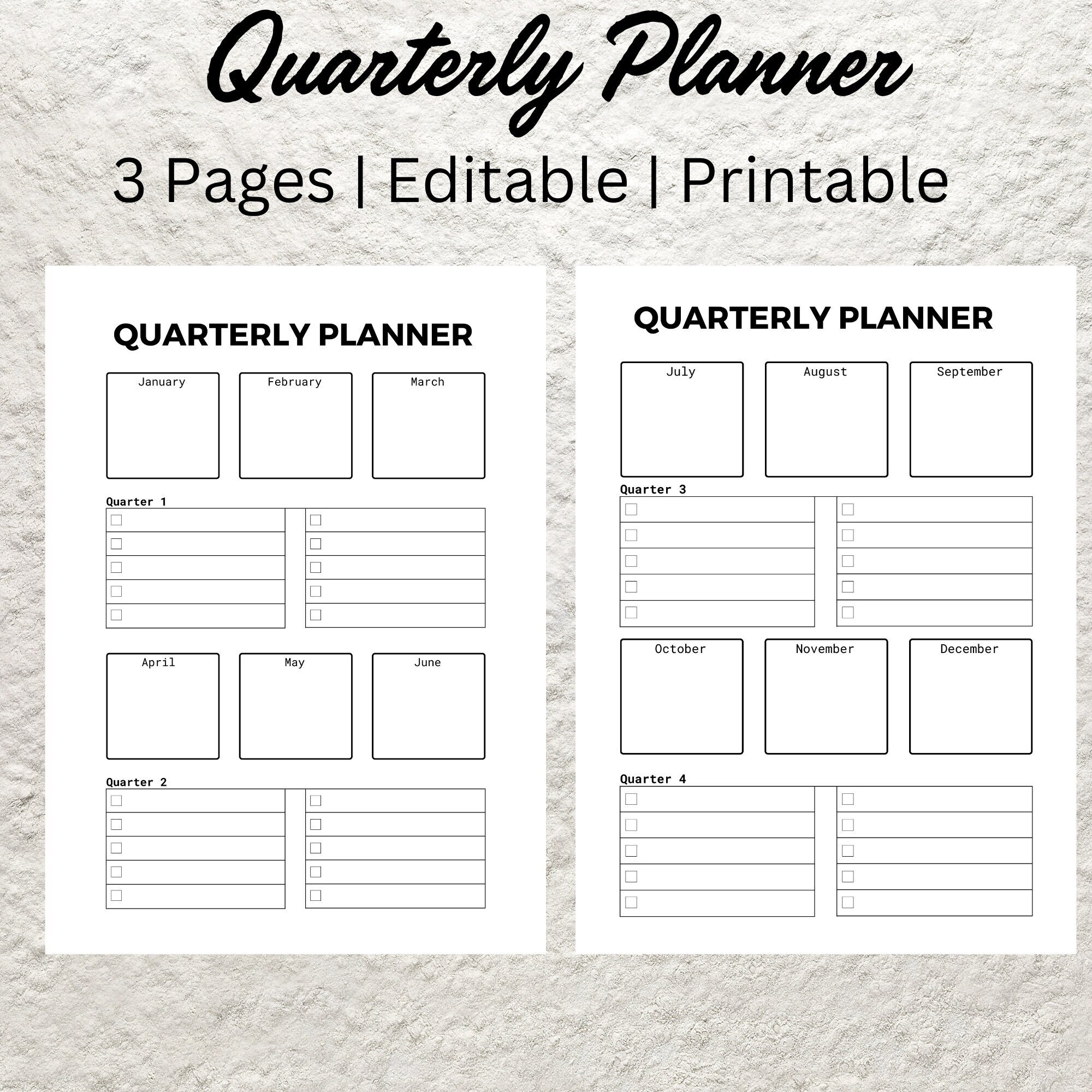 Quarterly Planner Template Printable Yearly Planner Quarterly Goal