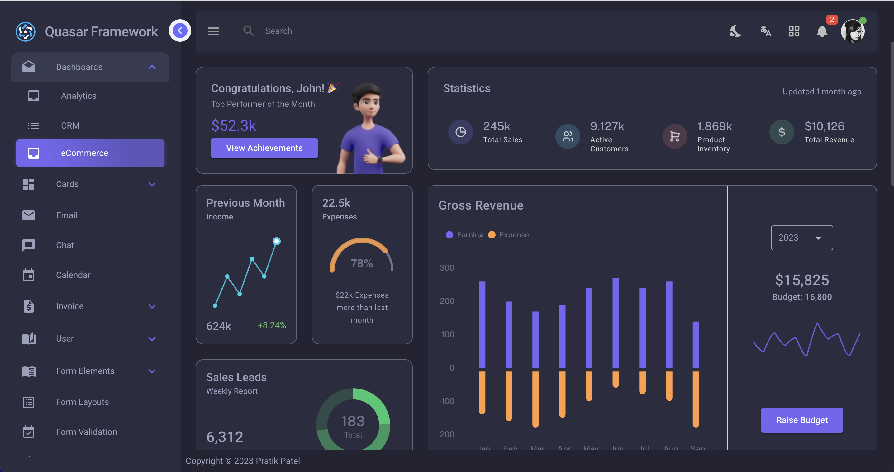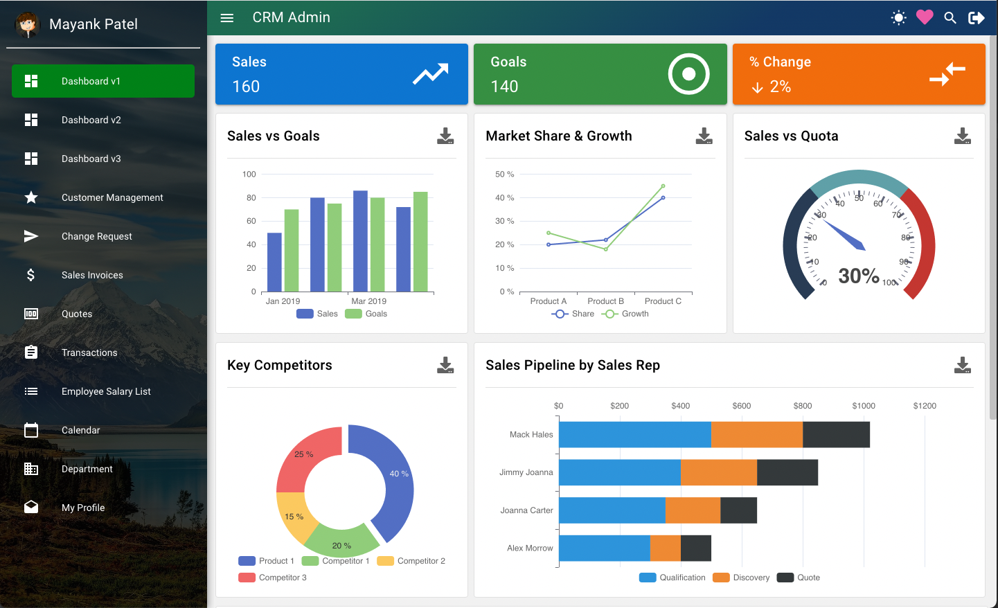 Quasar Admin CRM Best CRM template to buy very cheap Mayur Patel